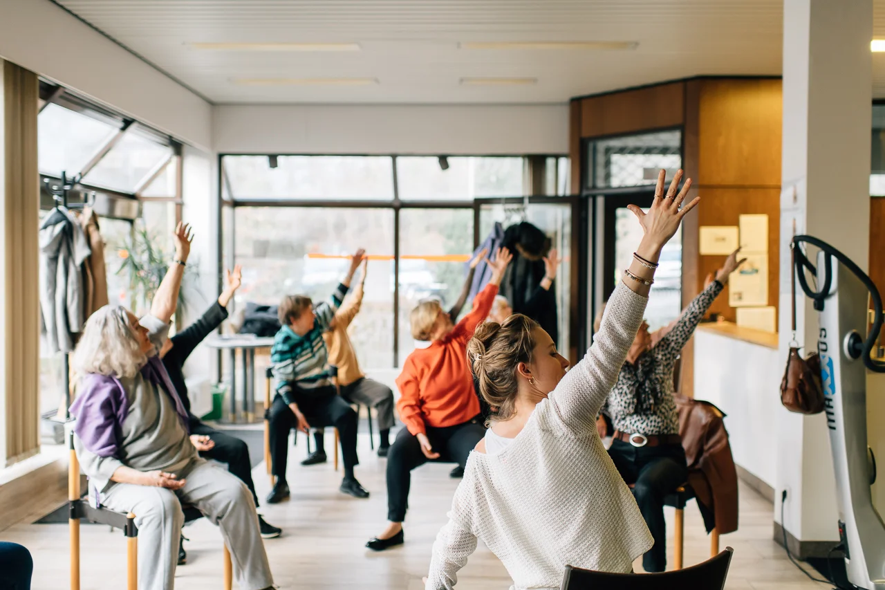 In Saarbrücken gibt es ein Fitnessstudio für Senioren. Das gerofit. Von innen sieht es aus wie eine alte Sparkassen Filiale, aber gerade das gefällt mir. Kein shabby chic Inventar, keine bunten Yogaleggings aus Biobaumwolle, nicht mal Yogamatten. Hier zeigen seit Mai 2018 einige charmante Damen (und gelegentlich ein Herr) aus der Nachbarschaft, dass Alter kein Hindernis ist. Zusammen üben wir Yoga auf dem Stuhl.